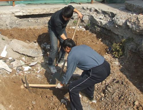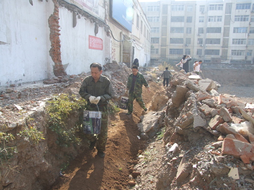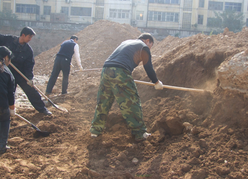 由于天氣逐漸降溫,為防止物資城東區(qū)施工工地的水管管道凍裂,11月1日公司副總經(jīng)理原躍作帶領(lǐng)物資城全體員工對(duì)暴露在外的管道進(jìn)行回填土方勞動(dòng)。