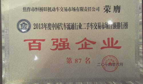 祝賀我二手車市場獲全國二手車市場百強企業(yè)