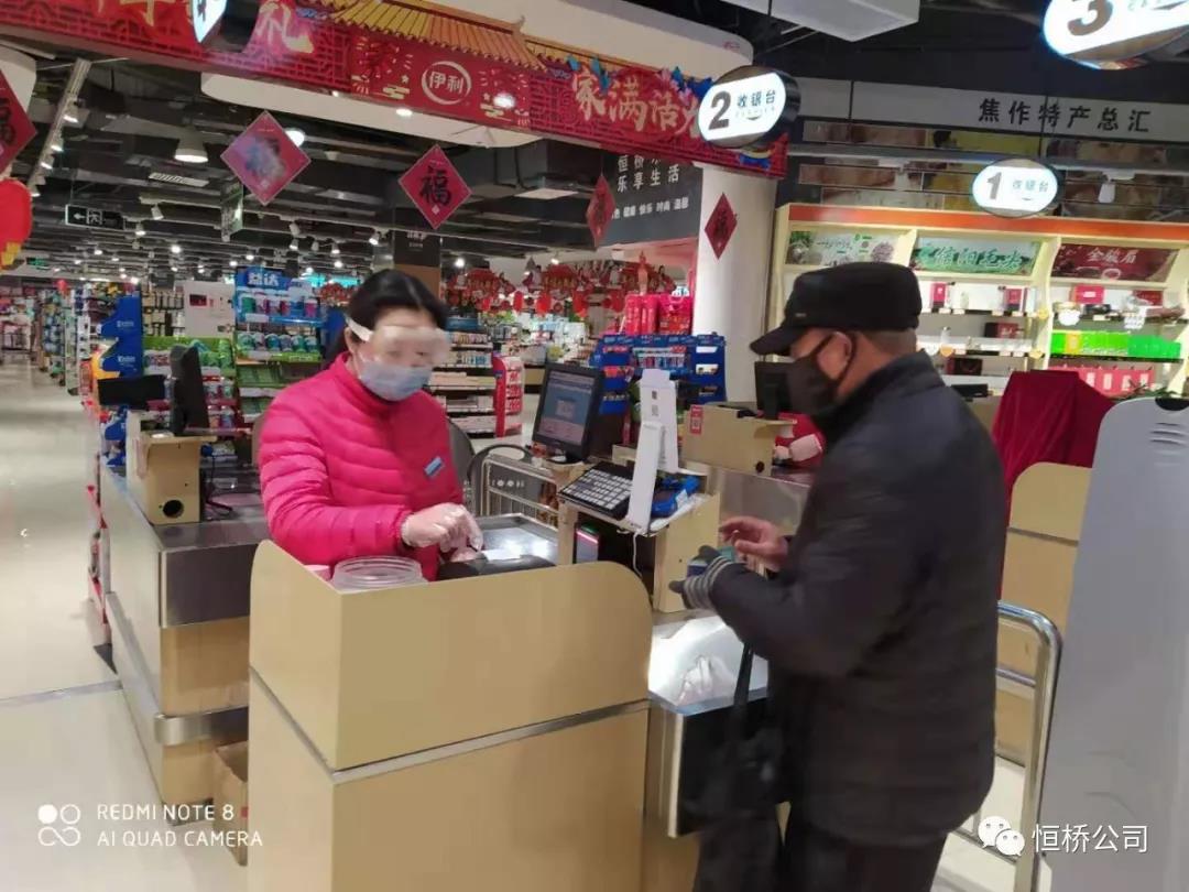 春節(jié)期間超市積極落實要求,工作人員佩戴口罩上崗,堅持每天兩次噴灑消毒液對賣場進(jìn)行消毒;超市門口設(shè)立提醒進(jìn)店顧客佩戴口罩的“溫馨提示牌”,并建立發(fā)熱人員信息及時登記上報制度等,努力為顧客營造潔凈舒心的購物環(huán)境,提供**服務(wù),保持賣場正常運行。
